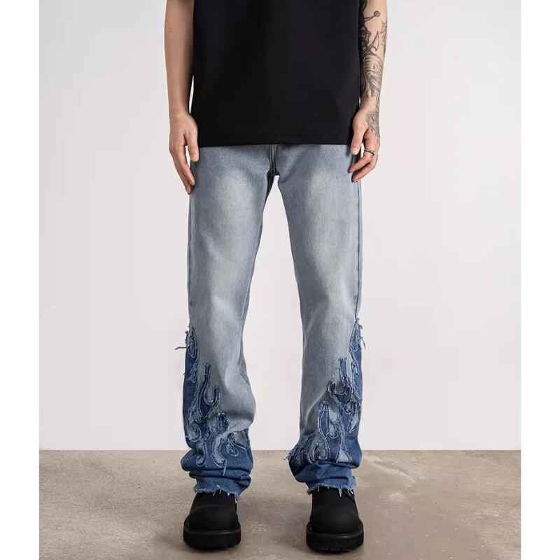 【DRIP5400】D/B Flame Patch Embroidery Flared Denim