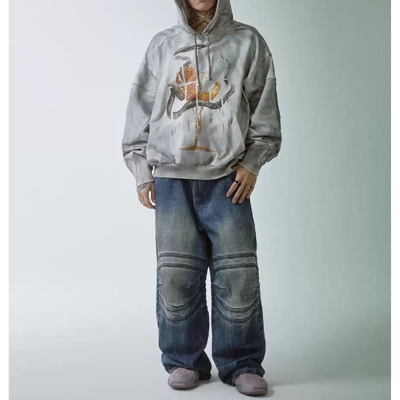 【DRIP5884】F2CE Scuff Damaged Snake Print Hoodie
