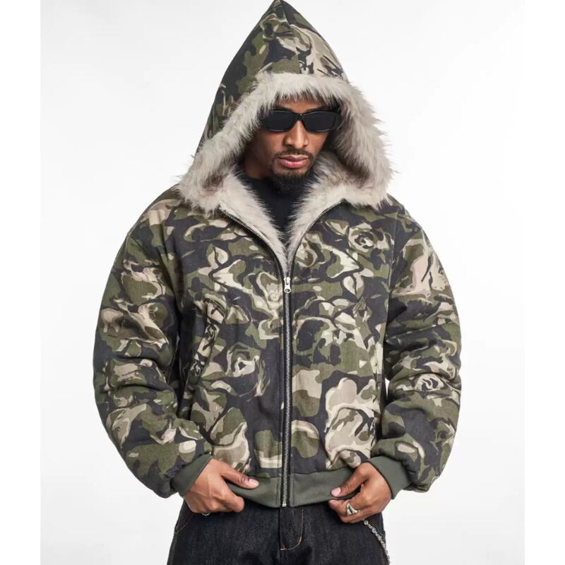 【DRIP6295】D/B Fur Hood Camouflage Cotton Jacket