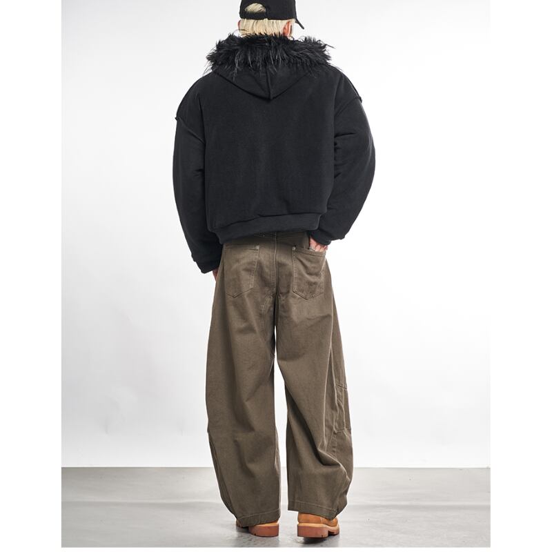 【DRIP6302】D/B Fur Hooded Oversized Cotton Jacket