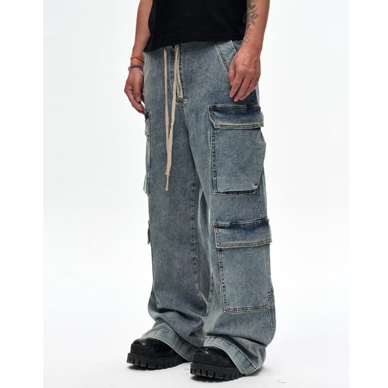 【DRIP6416】D/B Side Pockets Washed Flared Denim